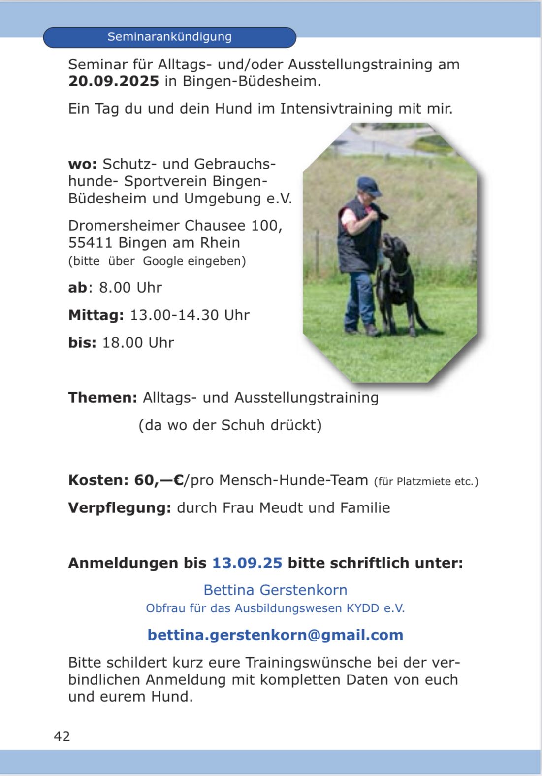 Anmeldung mit Name, Adresse, Telefonnummer und Mail bis zum 07. November unter zuchtbuchamt@kydd-doggen.de